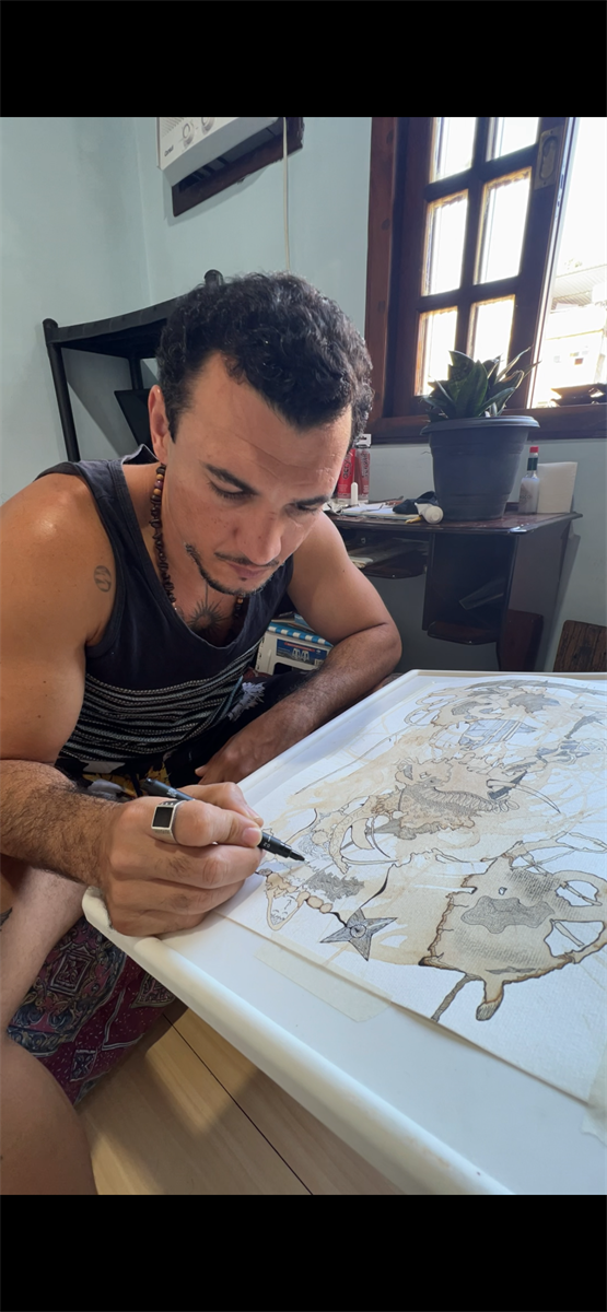 Autodidata com muitilinguagens e técnicas mais focadas com reaproveitamento de materiais recicláveis transformados em ferramentas e matérias primas diretas aplicadas a muititelas de tecidos a papéis com pinturas e ilustrações.