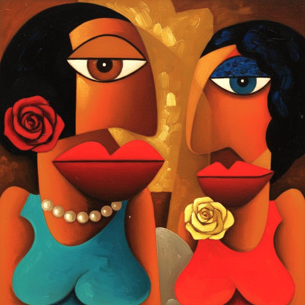 Uma composição forte e colorida que explora a representação feminina através de uma estética moderna e impactante, utilizando cores e formas para evocar emoção e personalidade em cada uma das "damas".