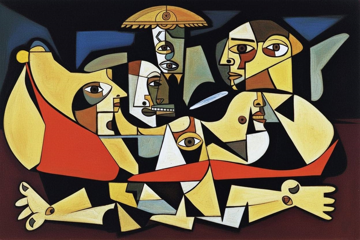Cubismo: A pintura apresenta uma clara influência cubista, caracterizada pela fragmentação das formas e pela representação dos sujeitos através de planos geométricos (triângulos, retângulos, losangos) que se interseccionam. O artista desmembra as figuras humanas em múltiplas facetas, sugerindo a visualização de diferentes pontos de vista simultaneamente.