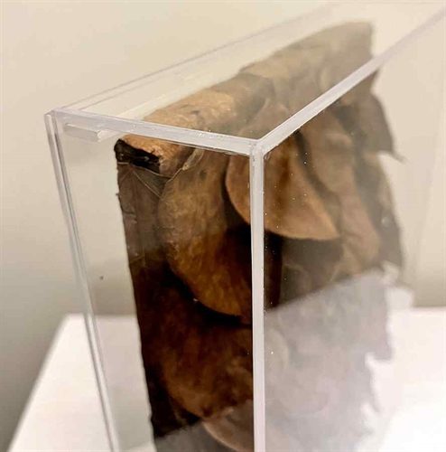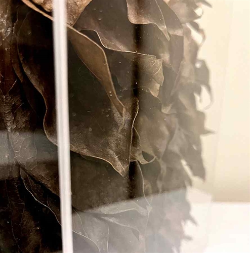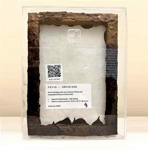 Fixadas à tela e protegidas por uma caixa de acrílico, essas folhas imortalizam um fragmento do ciclo natural e sua subsequente transformação ao longo do tempo, transformando-se em arte biofílica capaz de trazer o poder tropical das florestas para o espaço humano.