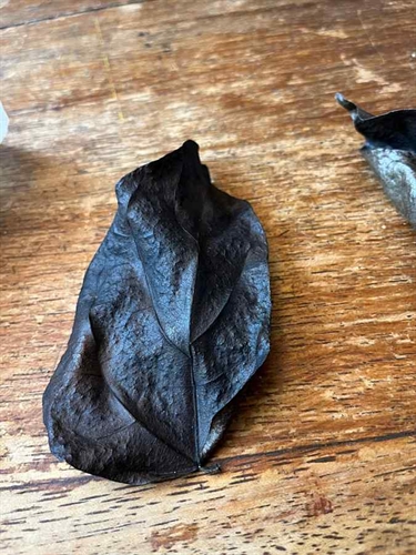The intense color the leaf acquires over time—transforming from deep green to a brilliant, almost black hue—creates a dramatic and unique contrast.