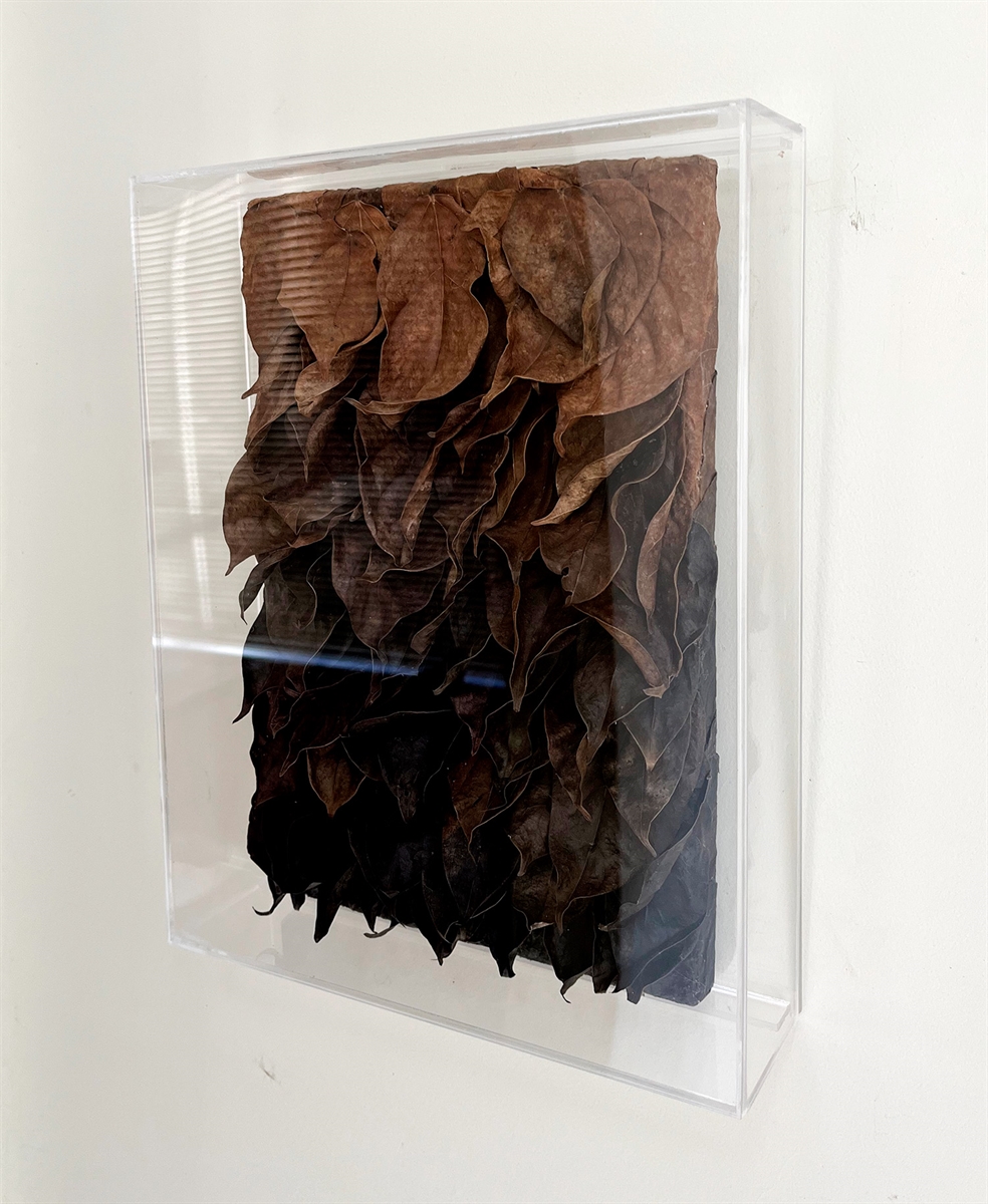 Fixed to canvas and protected by an acrylic box, these leaves immortalize a fragment of the natural cycle and its subsequent transformation over time, transforming into biophilic art capable of bringing the tropical power of the forests into human space.