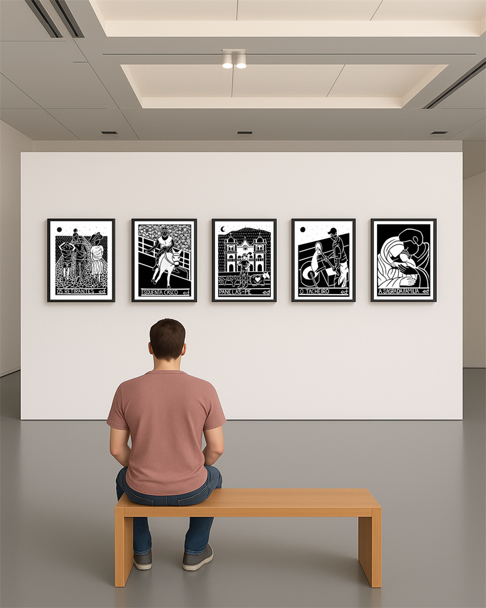 "A Sagrada Família", uma obra significativa da série "Origens" do artista campolimpoense Edvam A. (ed). Criada em 2025, esta pintura em acrílico sobre tela é um tributo à unidade e ao vínculo familiar, ressoando a força gráfica e a profundidade emocional da xilogravura.