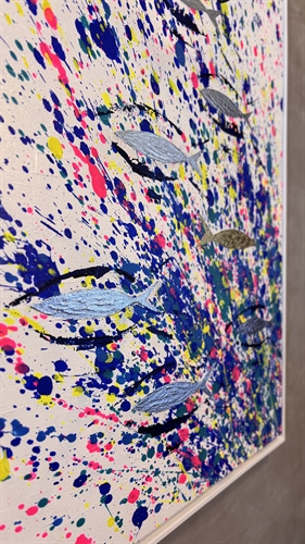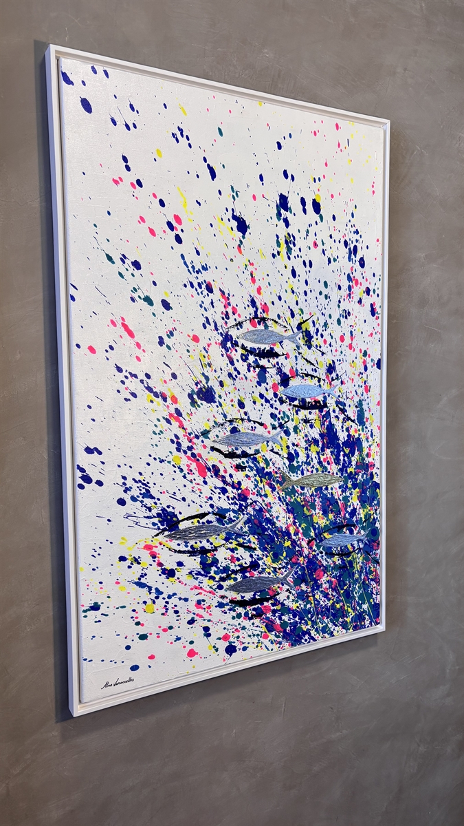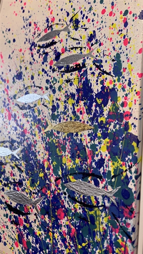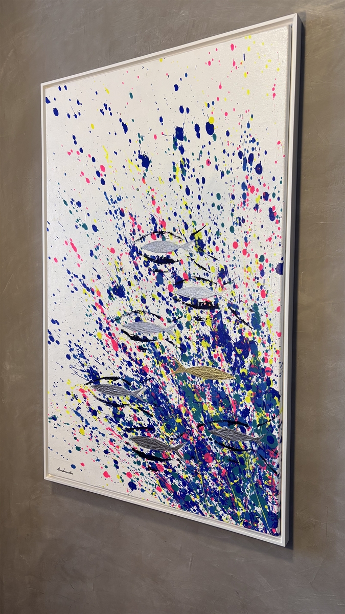 A técnica de dripping foi utilizada intencionalmente para simbolizar o caos de informação, influência e tudo que recebemos diariamente vivendo neste século. É na contramão do mundo, afinal, você não é todo mundo!