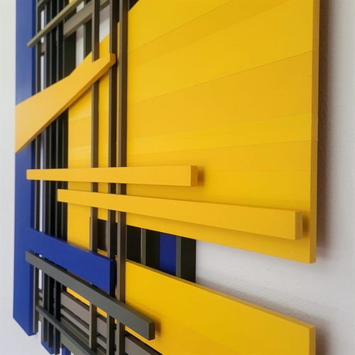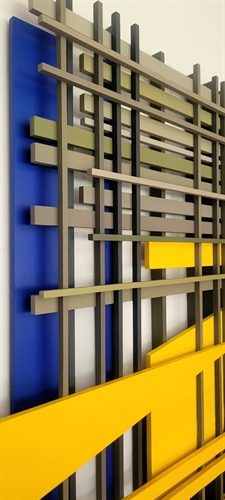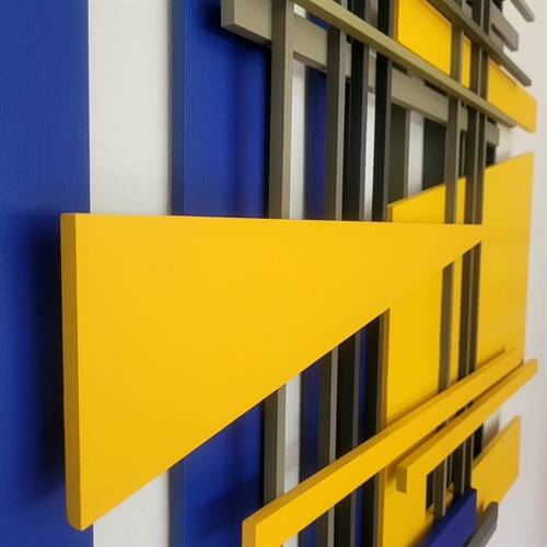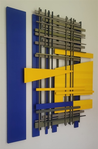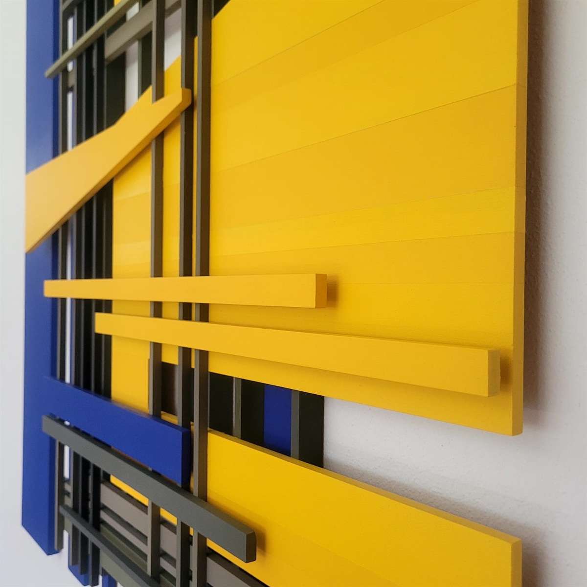 El interés puesto en la rítmica y el discurso poético apelando a la emotividad, son filtrados por la abstracción geométrica y el color. Me interesa la superposición de esas plataformas: la canción y la imagen visual. El orden abstracto propio de la música y lo anatómico de las piezas pictóricas. En el entrelazamiento de ambos se configura un espacio de evocación mutua. La obra no es una reinterpretación ni una cita a la canción, sino un juego rítmico que se le acopla, en la dimensión más pura del acto compositivo, a una poética previa que proviene de otro lenguaje.