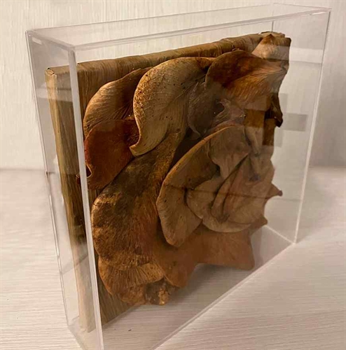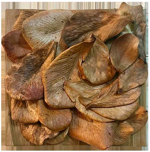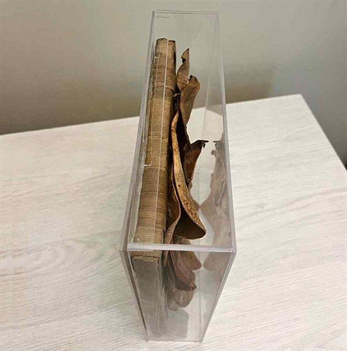 When dehydrated, these beautiful and colorful leaves become more rigid, which is why we chose our favorite "papyrus," the leaves of the Japanese bamboo, extremely strong and malleable, to line the frame that will hold these blessed leaves.