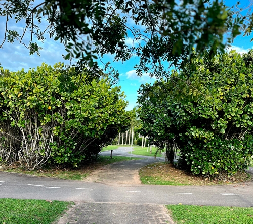 No parque onde encontro a maioria das minhas folhas, a Clusia está em uma posição central, tão robusta que lhe criaram uma passagem inferior onde muitas folhas são depositadas. Também contorna laguinhos entre o jardim e a selvagem mata atlântica, além de adornar diversos jardins no caminho.
