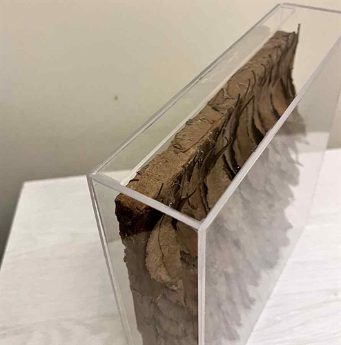 The upper part shows the part that connected the leaves to the branch, crowning this biophilic work in this collection.