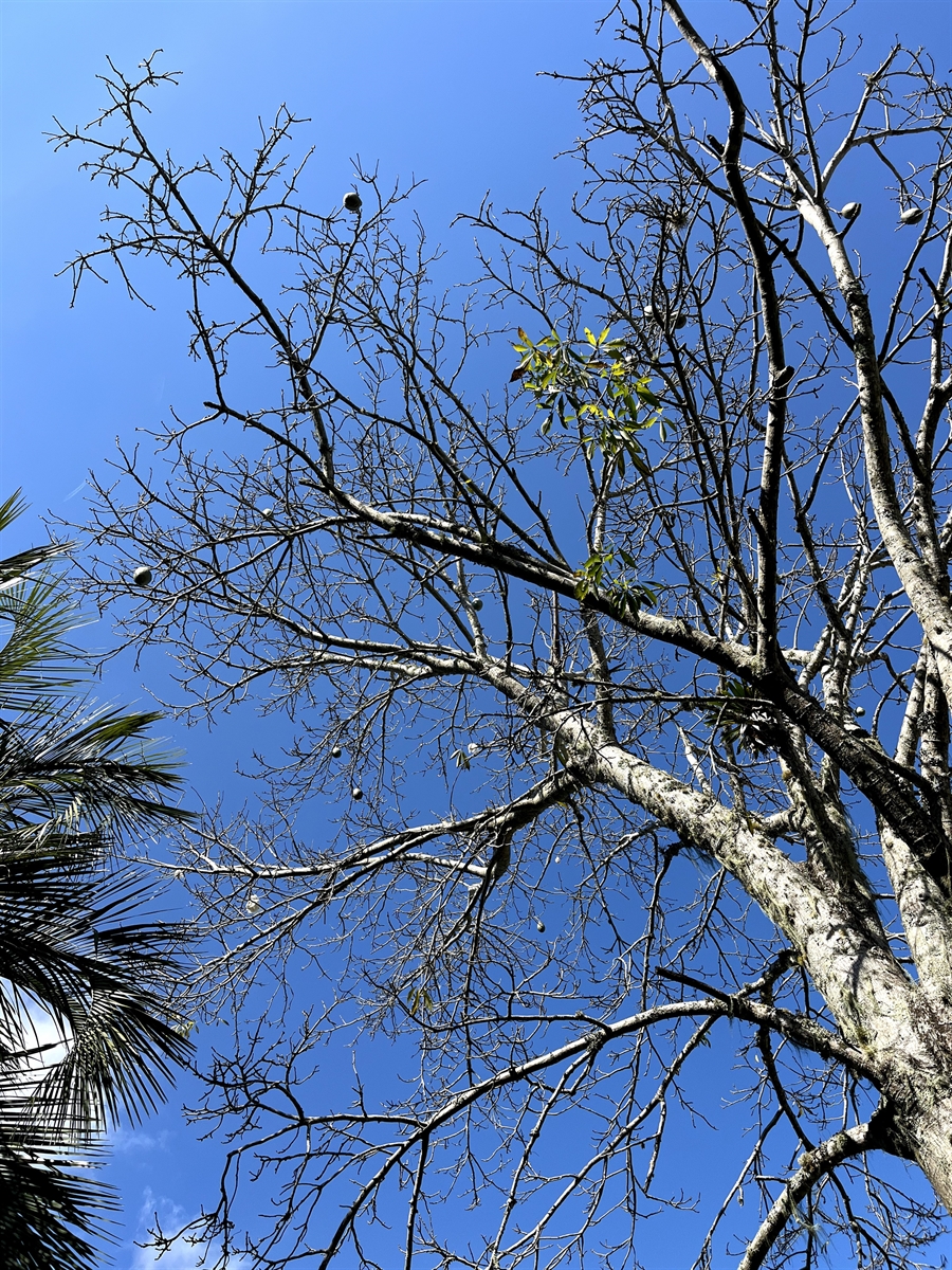 The Kapok tree is a majestic tree, native to Brazil and other regions of South America. Known for its thorny trunk and beautiful pink flowers, it is also notable for the remarkable cycle of its leaves, which renew themselves twice a year, leaving the crown nearly bare at certain times.