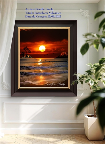 "Entardecer Vulcânico" é mais do que uma pintura; é a fusão do drama da natureza com a beleza hipnotizante de um pôr do sol. Quis capturar aquele momento raro onde a força bruta da terra e a serenidade do oceano se encontram sob um céu em chamas. É um convite para sentir a energia, o mistério e a grandiosidade do nosso planeta.