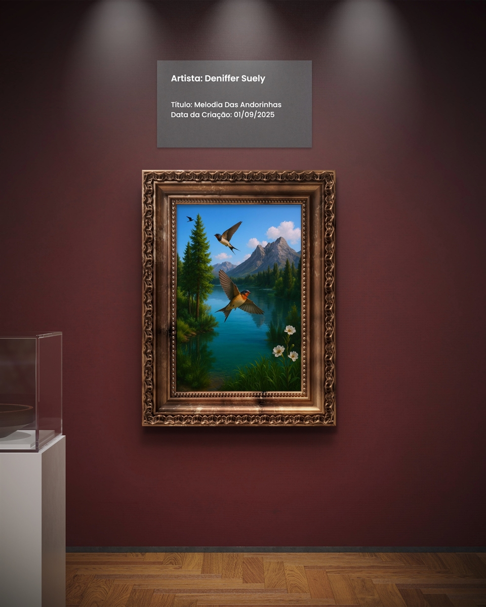 A suavidade do voo, o reflexo cristalino da água e a imponência das montanhas se unem em um instante de pura harmonia. 🌿🕊️ Nesta obra, cada detalhe transmite liberdade, paz e conexão com a natureza.