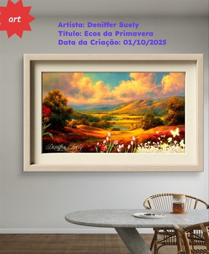 Permita-se ser transportado(a) para um lugar de paz e luz. Esta obra, "Ecos da Primavera," é uma celebração das cores douradas do entardecer sobre um vale florido. Cada detalhe é um convite para sentir a tranquilidade da natureza