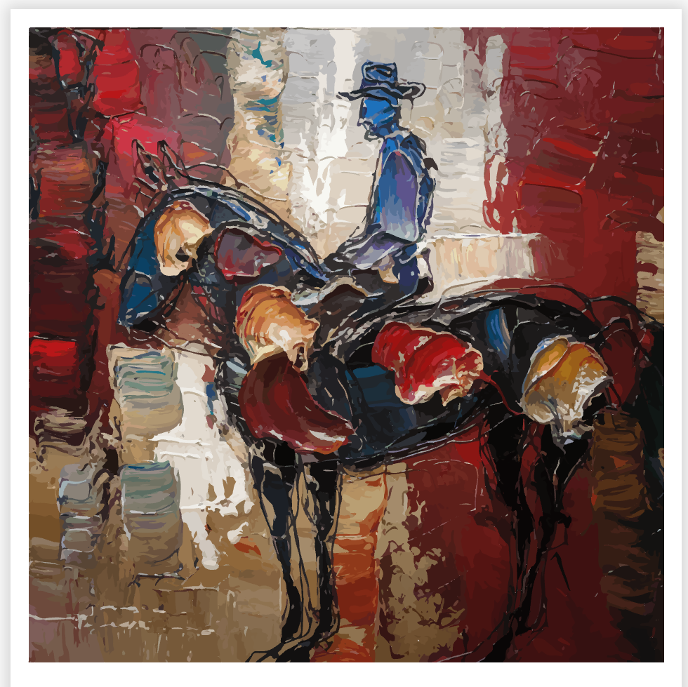 Para criar as obras, eu utilizei software de direção de arte e design para desenvolver efeitos de acabamentos de textura e de massa acrílica, foi aplicado 600 picadas de agulhas da impressora para cada polegada impressa, além de efeitos de brilho digital. O papel de luxo utilizado é o fotográfico matte premium, com 140 gramas e espessura de 1 mm, o tamanho da obra é grande e tem o propósito de causar forte impacto e destaque visual, as dimensões das medidas são 101 x 101 cm.