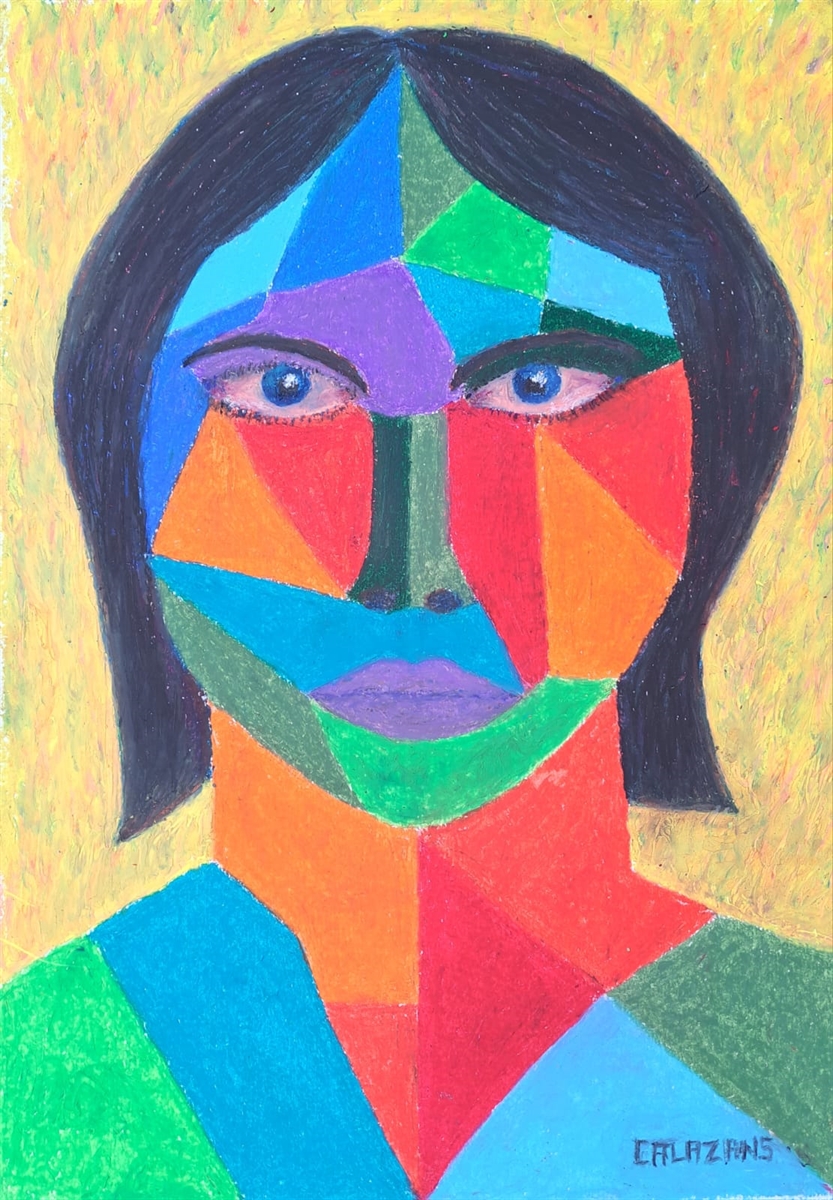Mulher Colorida. Giz pastel oleoso sobre papel Canson 300g formato A3 (29,7x42cm).