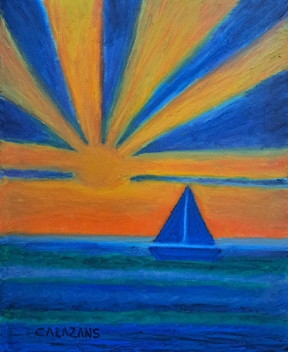 Paisagem com Barco. Giz pastel oleoso sobre tela formato 50x40cm.