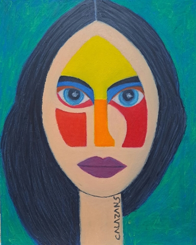 Máscara Solar. Giz pastel oleoso sobre tela formato 50x40cm.