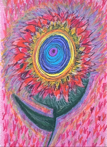 Descrição: Flor Psicodélica. Giz pastel oleoso sobre papel Canson 300g formato A3 (29,7x42cm). (vendida)