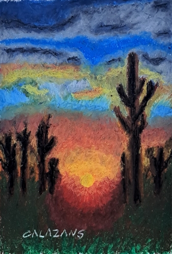 Pôr do Sol no Agreste. Giz pastel oleoso sobre papel Canson 300g formato A3 (29,7x42cm).