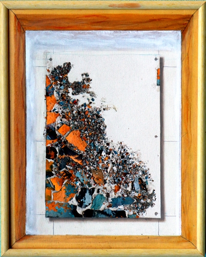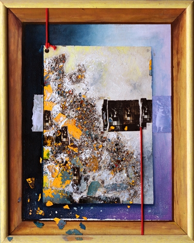 Aqui fiz uso de colagem, impressão jato de tinta, tinta acrílica, tinta industrial e reaproveitada sobre tela.