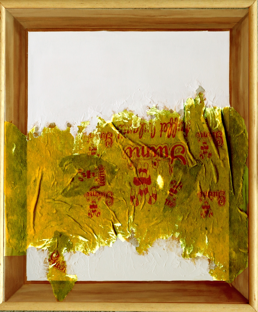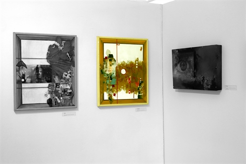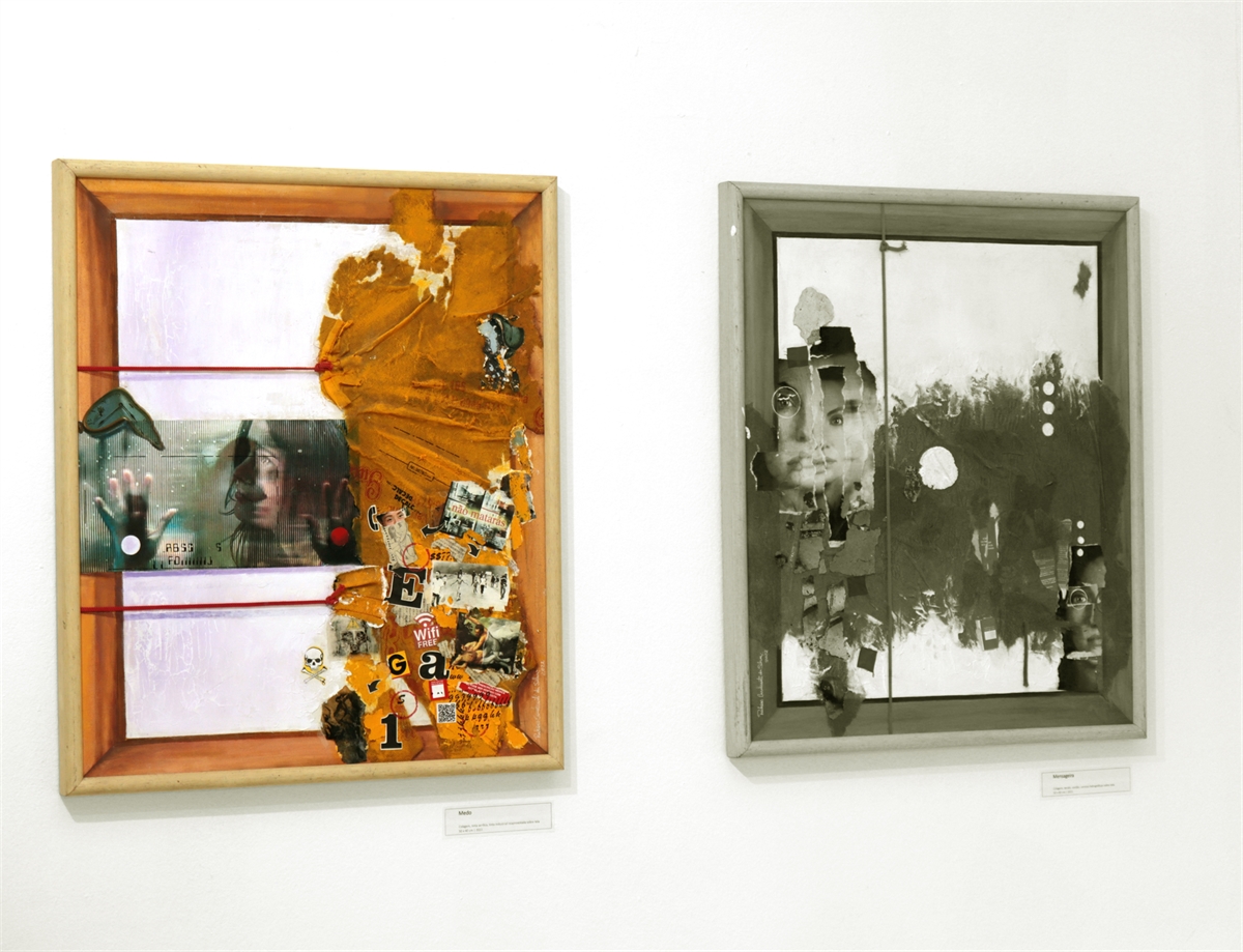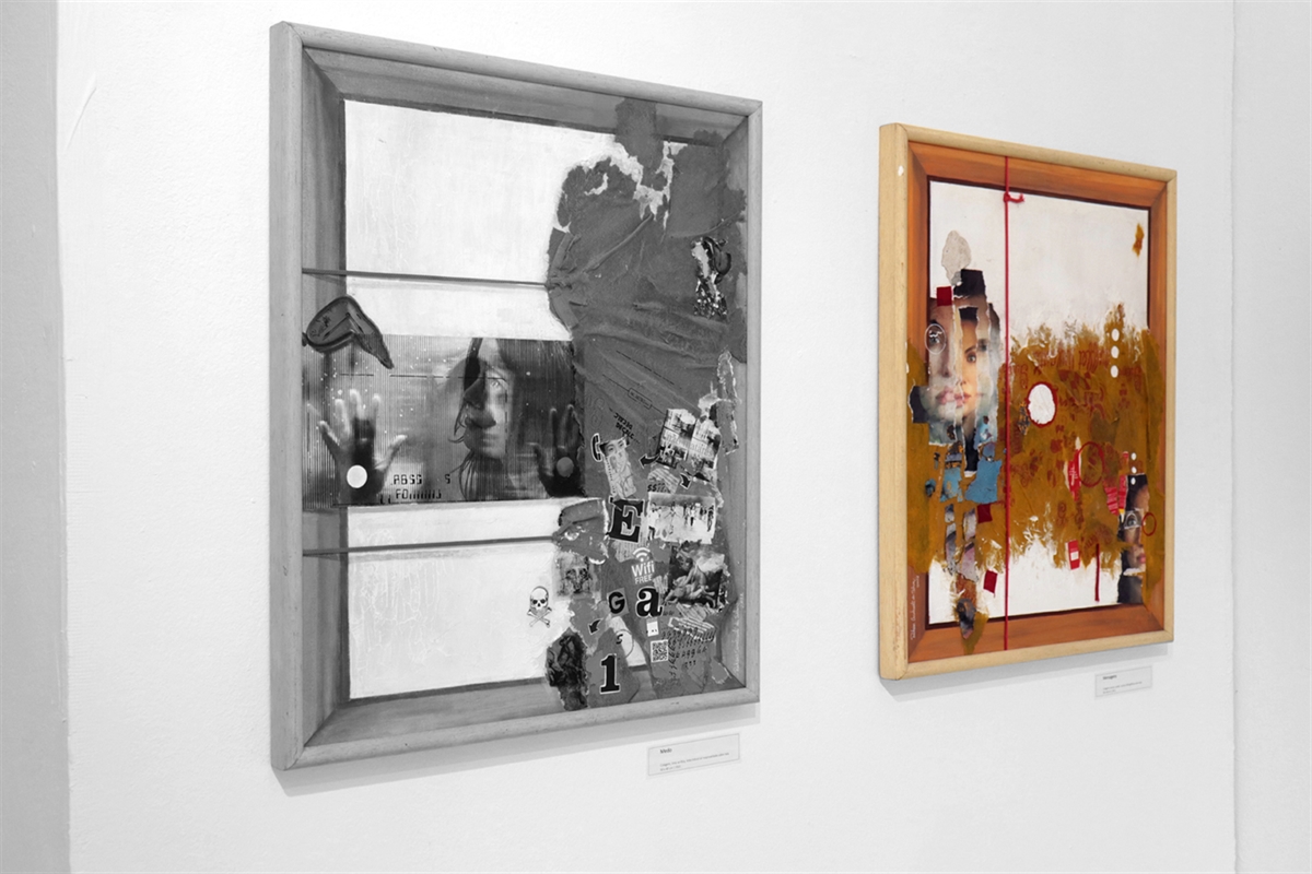 Usei impressão jato de tinta, colagem, tecido (TNT), cordão, canetas hidrográficas sobre tela.
