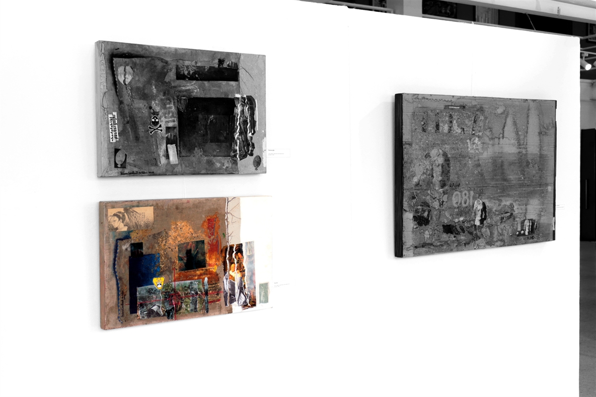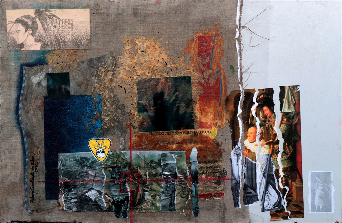 Usei, para esse trabalho, linho, colagem e pastel oleoso sobre papel paraná.
