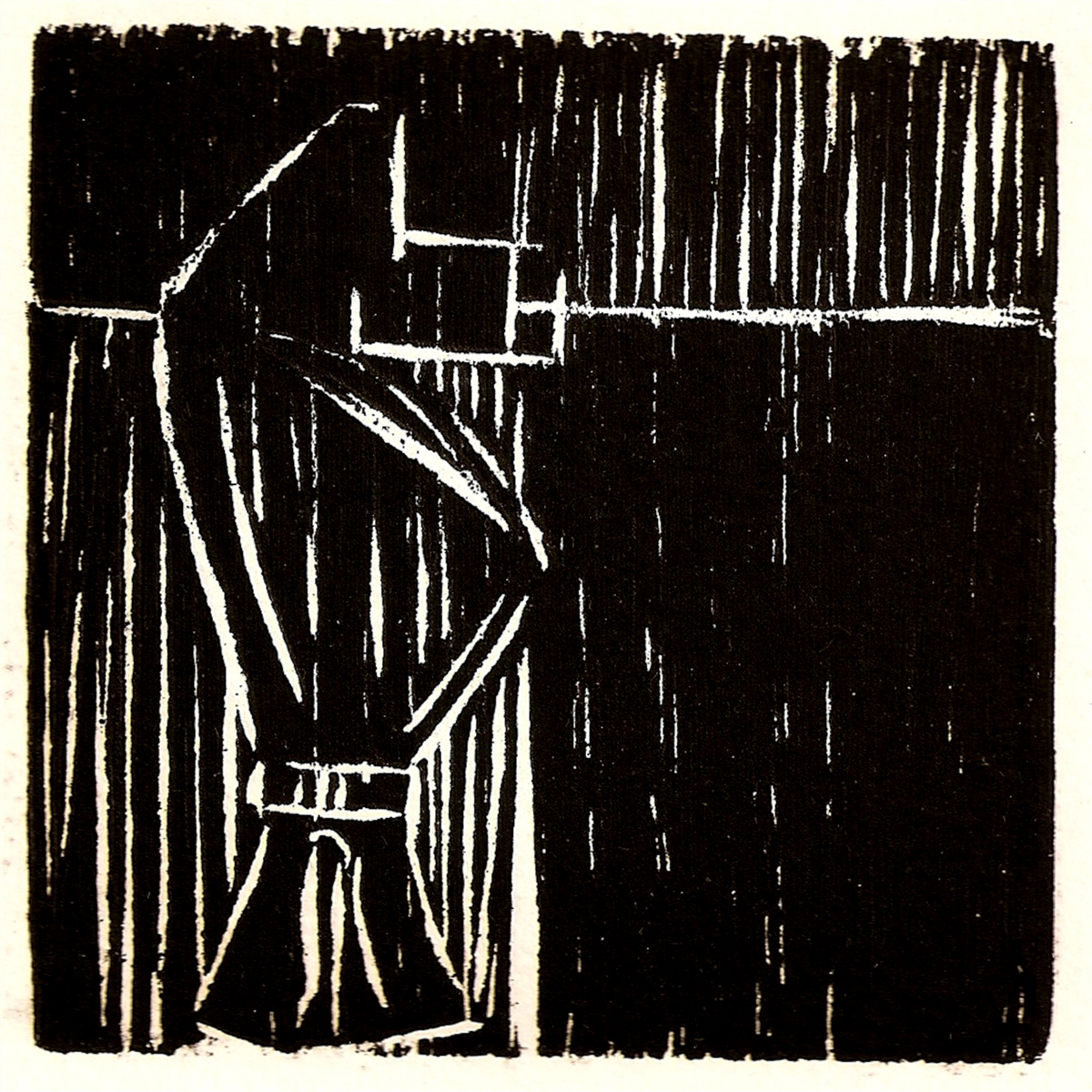 Aqui, represento o cavalo no jogo xadrez. Esta série em xilogravura foi desenvolvida no formato quadrado, pois queria representar o tabuleiro deste jogo. Todas as gravuras, da primeira tiragem, foram impressas em canson.