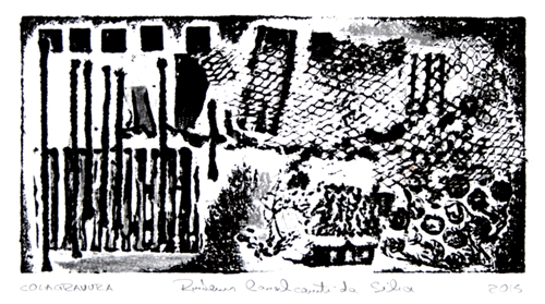 Essa cologravura, foi impressa em papel Solftwhite. Ao lado da obra está a matriz dela.