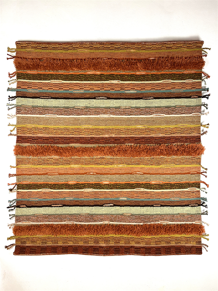 Os acabamentos com envolvimento dos fios de urdume coloridos remetem as