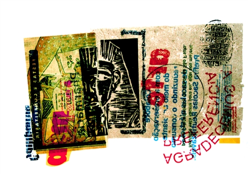 ste projeto começa com uma composição de várias impressões em linóleo em um papel de propaganda. Essa figura, nesta técnica, vai se repetir ao longo da obra. O projeto se divide em três partes: