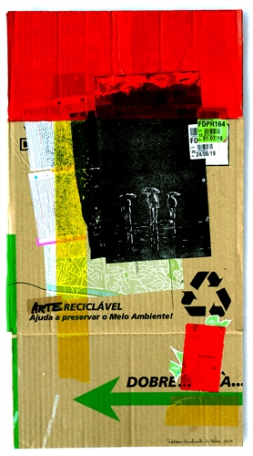 Xilogravura, tinta acrílica, colagem e fita adesiva sobre papelão, Este projeto conta com 12 trabalhos no total.