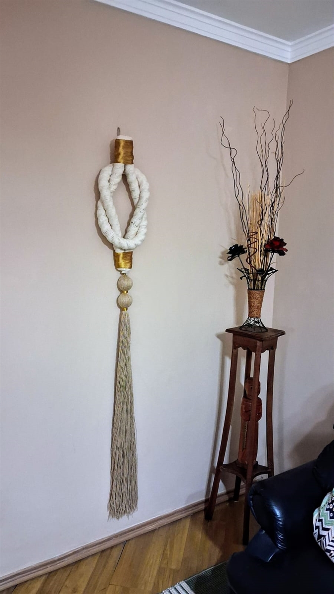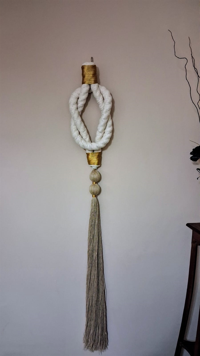 Adorno para parede em macrame, feito em corda, sisal e fios de algodão, peça unica, medindo 1,80 de latura, por 24 cm de largura e o nó tem 58 cm, linda peça para decoração de ambientes.