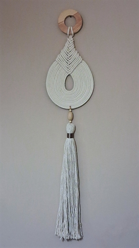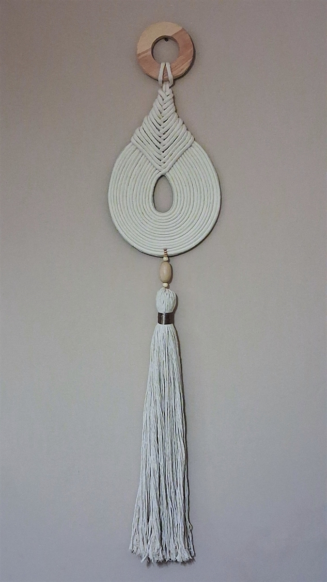 Adorno de parede em macramê, feito em fio de algodão 8 ml, medido 1,20mts de altura por 27cm de largura, peça unica, cor cru.