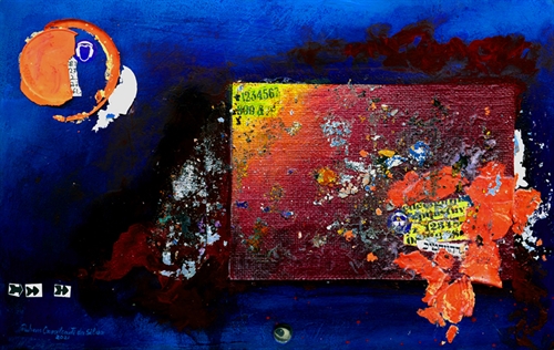 Este é o 2º trabalho, de um total de quatro, da série Horus. Par esse trabalhos, usei tinta acrílica, colagem e restos de tintas sobre madeira.