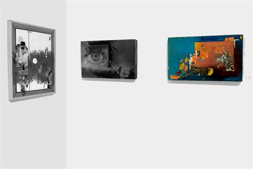 3º trabalho, da série Horus. Par esse trabalhos, usei tinta acrílica, colagem e restos de tintas sobre madeira.