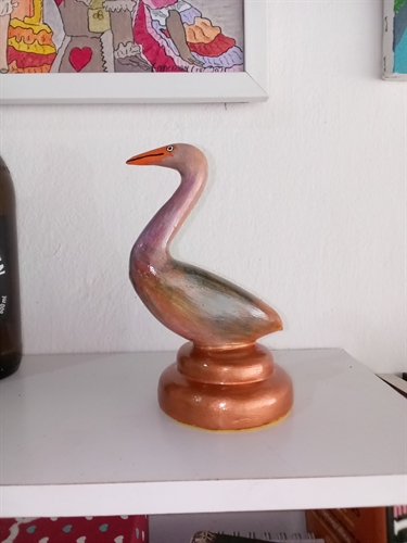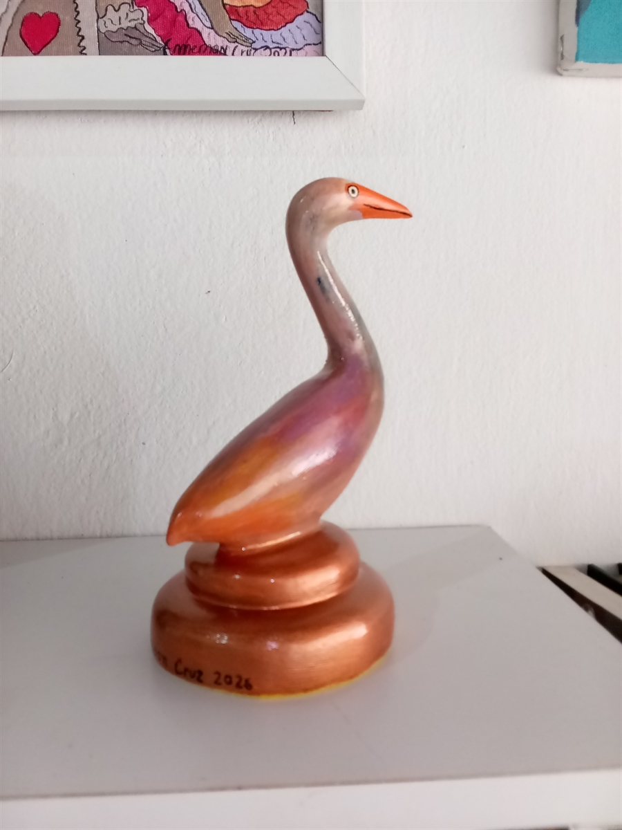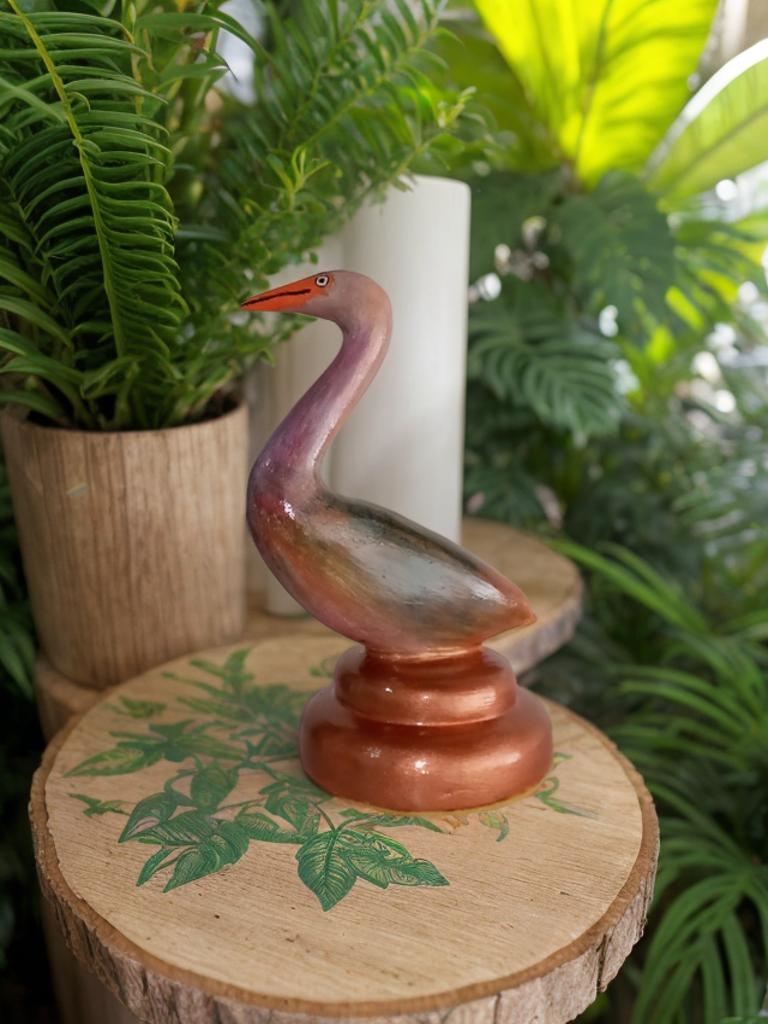 Escultura de garcinha feita em cimento e ferro. Peças únicas e feitas à mão.