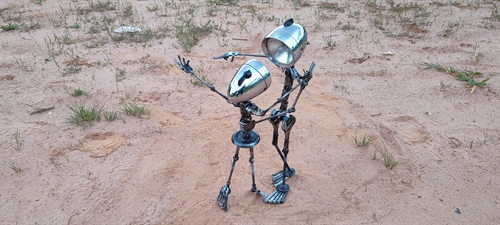 ARTE FEITA COM SUCATA DE FERRAMENTAS, FARÓIS DE BICICLETA E RECICLVEIS