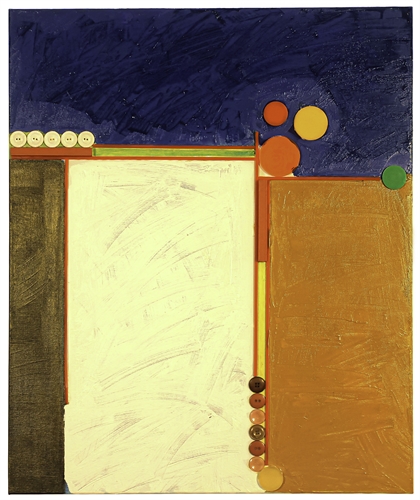 Tinta acrílica, óleo, objetos em acrílico, em madeira, botões, sobre tela.