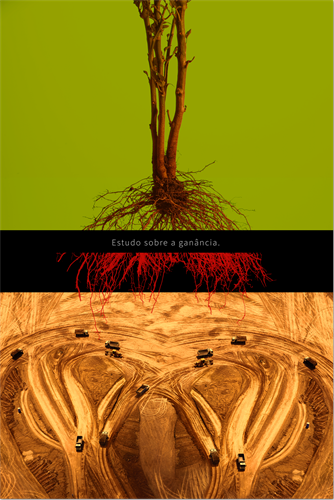 estava isolado a terra crua com as máquinas trabalhando e eu sabia exatamente o que tinha que ter saido de cima da terra para esta imagem ser possivel, e refletindo sobre ela percebi o formato de uma mão no rastro das máquinas, e assim nasceu estea foto que chamo de cartaz para o estudo sobre a ganância.